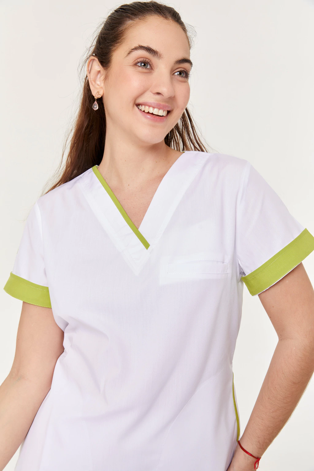 Nuestro ambo Gema Blanco es ideal para largas jornadas sintiéndote cómoda y canchera.
