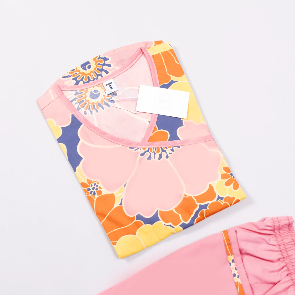 Ambo de tela ARCIEL color ROSA con estampado floral.
