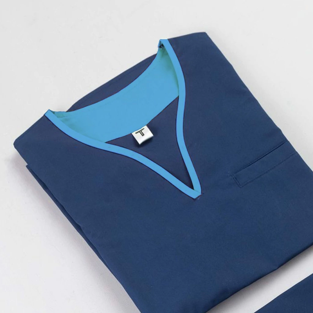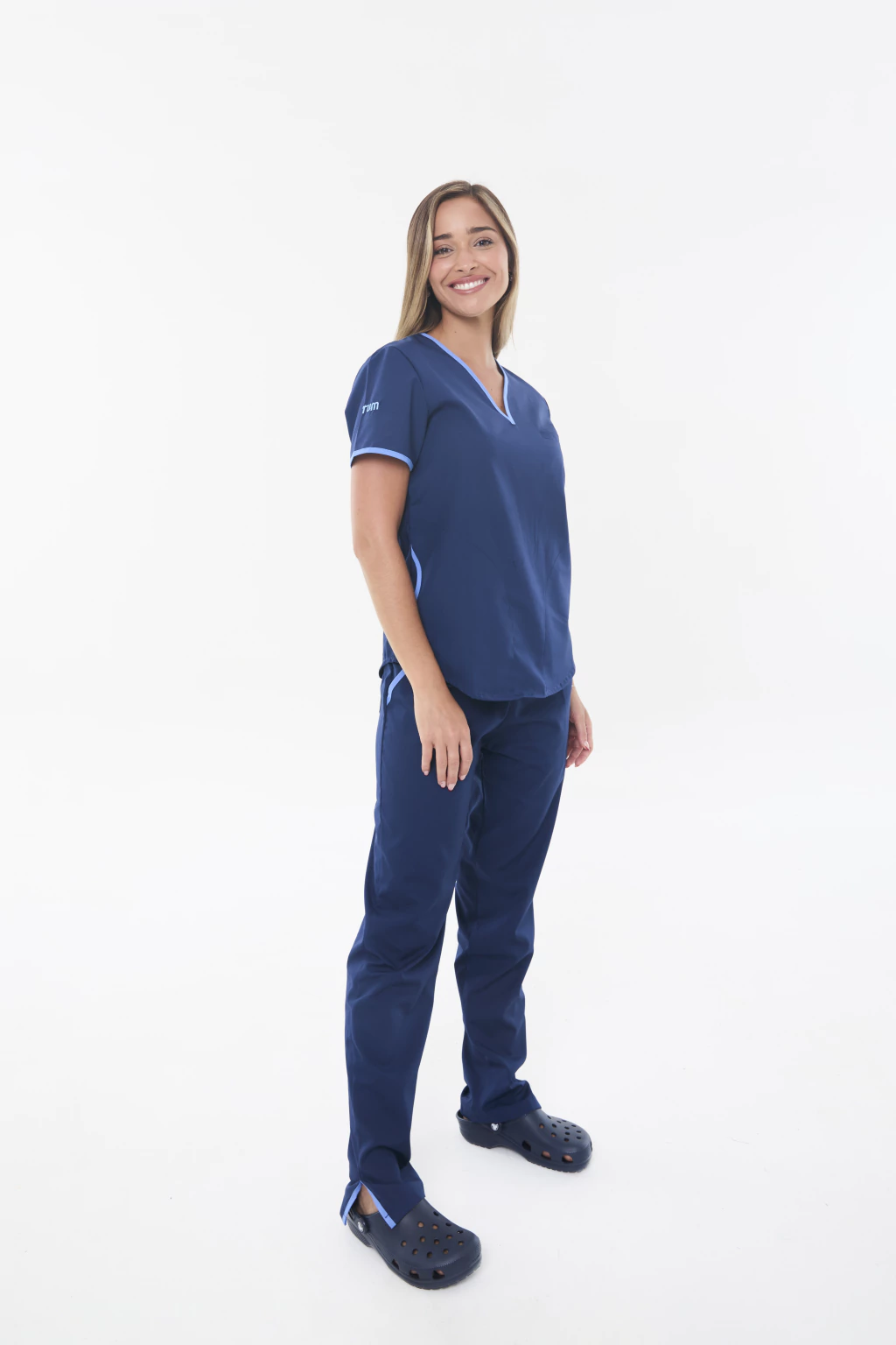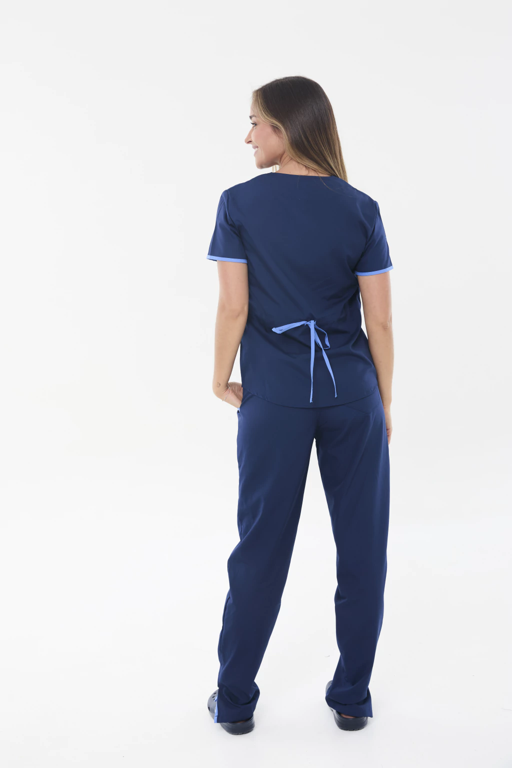 Nuestro ambo Zafiro Azul es ideal para largas jornadas sintiéndote cómoda y canchera todo el día.